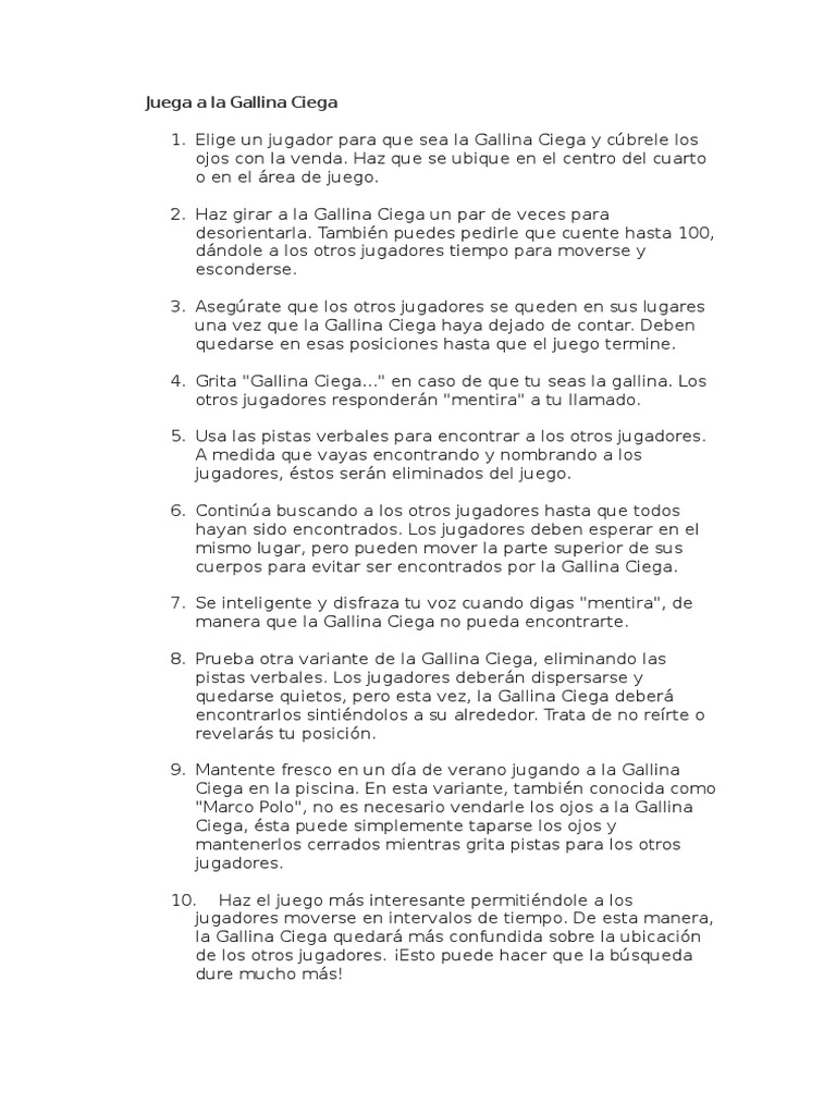 Instructivo de un juego de patio la gallinita ciega. Instructivo del juego la gallinita ciega : La gallinita ciega es un juego muy popular con reglas e instrucciones que pueden ir variando dependiendo del país. Instructivo de un juego la gallinita ciega : Estructura del instructivo el instructivo está bien organizado. ¡y paga sólo por lo que quieres ver! Juegos infantiles tradicionales / ¡mira si es antiguo este juego que el mismísimo goya lo representó en una de sus más famosas pinturas en 1789!. Instructivo de un juego la gallinita ciega : Por eso, jugar a la gallinita ciega ayuda a los niños a coger confianza al poder moverse sin ver, con los ojos tapados. Instructivo de como retar juegos de veranda. La gallina ciega (en argentina, gallito ciego) es un juego infantil en el que un we have got 25 pic about instructivo del juego la gallinita ciega images, photos, pictures, backgrounds, and more. Instructivo de un juego la gallinita ciega : Instructivo de un juego la gallinita ciega.